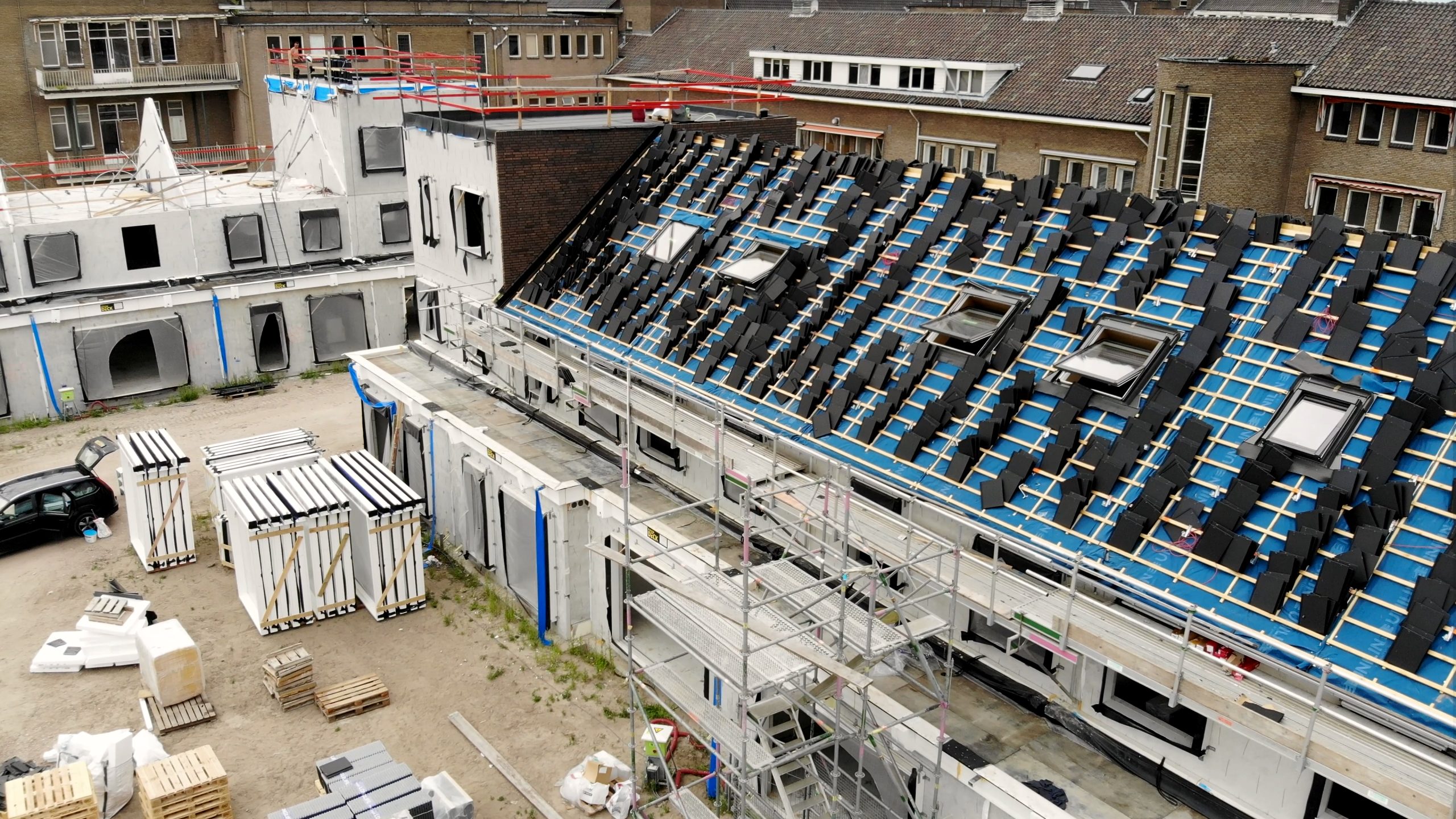 Ook zijn diverse aanvullende werkzaamheden voor Koopmans uitgevoerd, zoals het naar binnen draaien van de technische installaties, het opperen van pannen en dakbedekking, het plaatsen van hefsteigers bij het te renoveren ziekenhuispand etc.